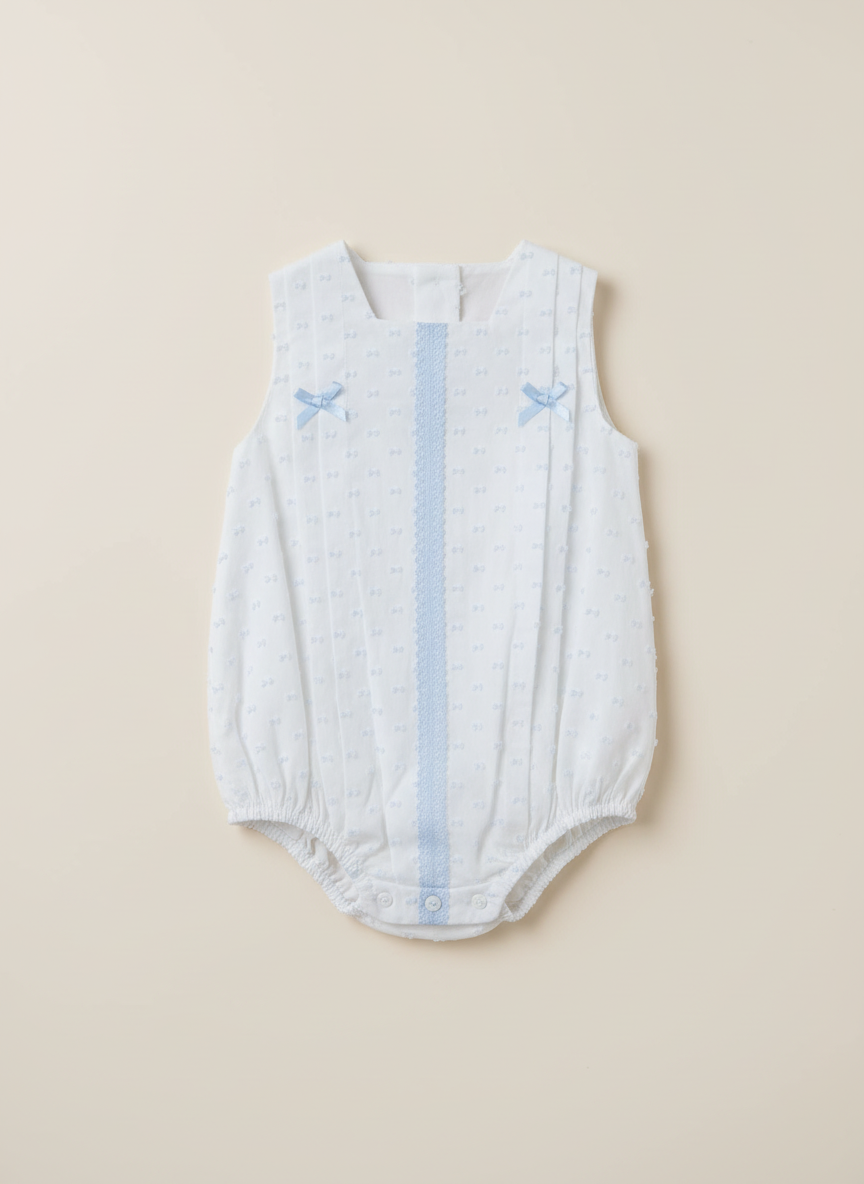 Pelele – Blanco detalles celeste – 100% algodón