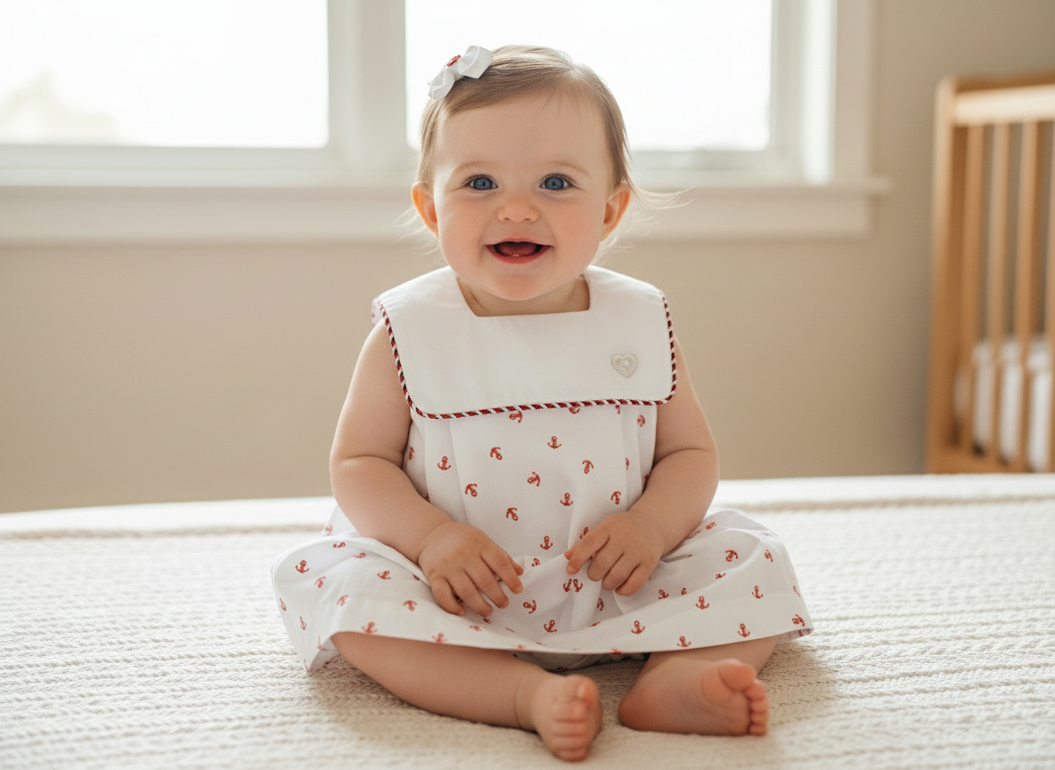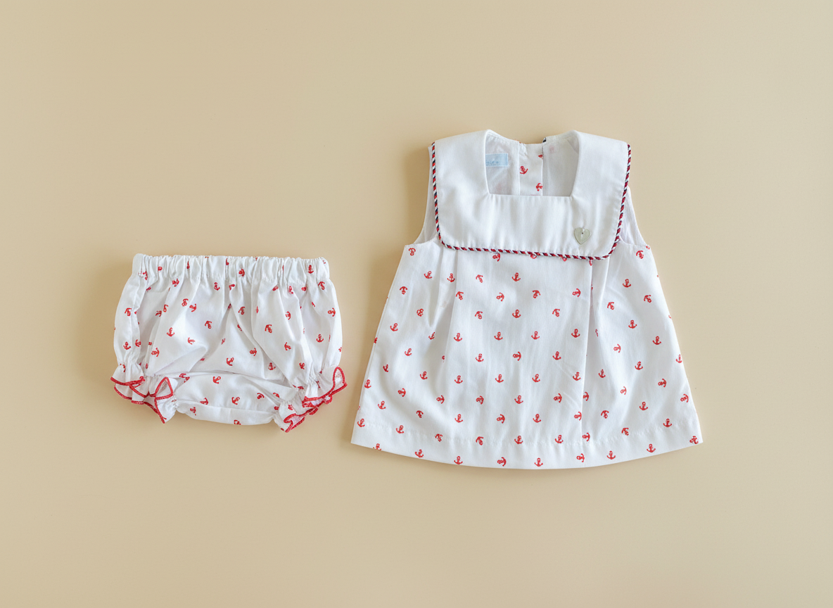 Vestido – Blanco estampado náutico – 100% algodón