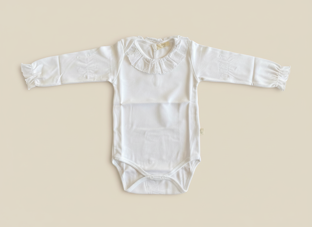 Onesie – Blanco – Puntos rosados en el cuello – 100% algodón