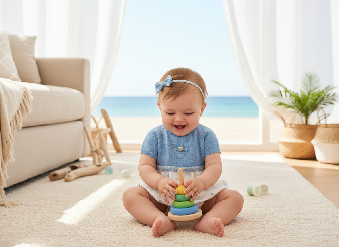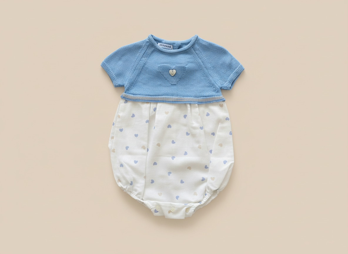 Pelele – Blanco y azul estampado corazones – 55% lino 45% algodón