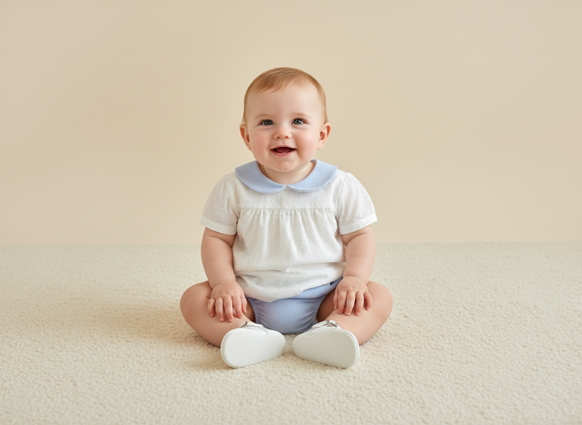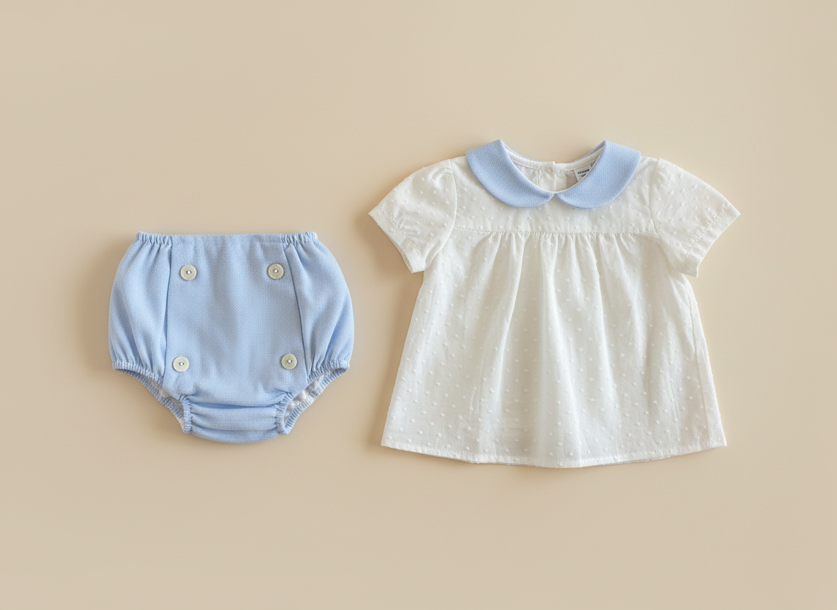 Conjunto – Camisa manga corta blanca – Bloomer azul – 100% algodón