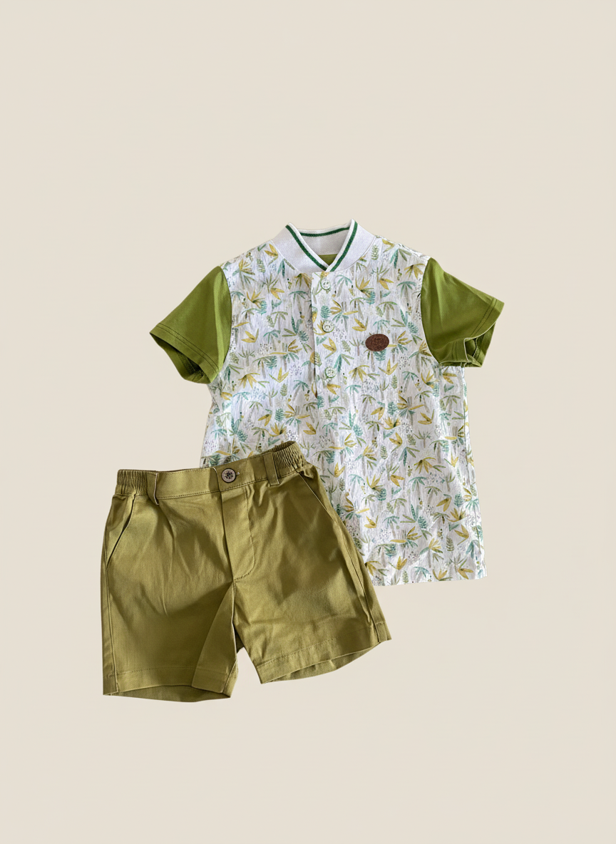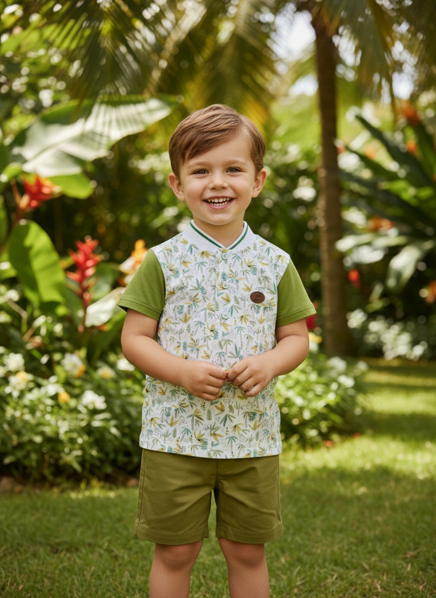 Conjunto de polo estampado y pantalón verde olivo – 94% algodón – 6% elastano