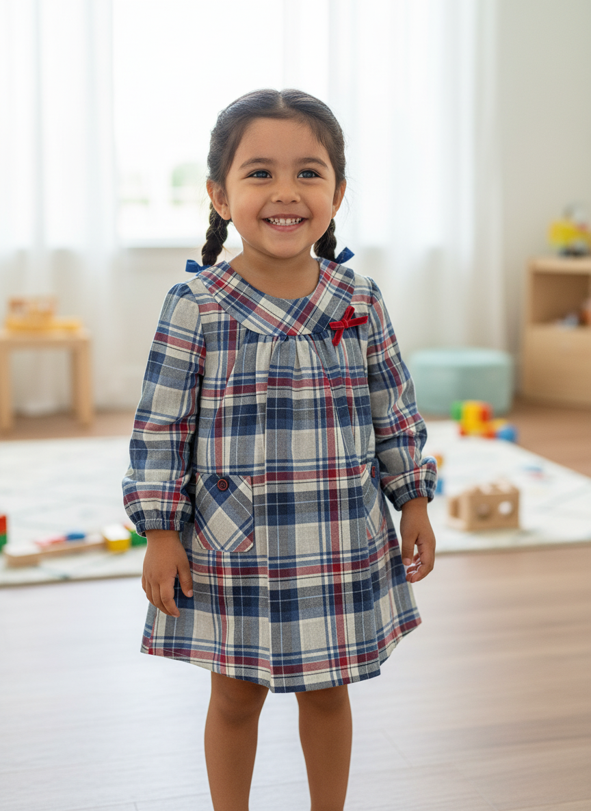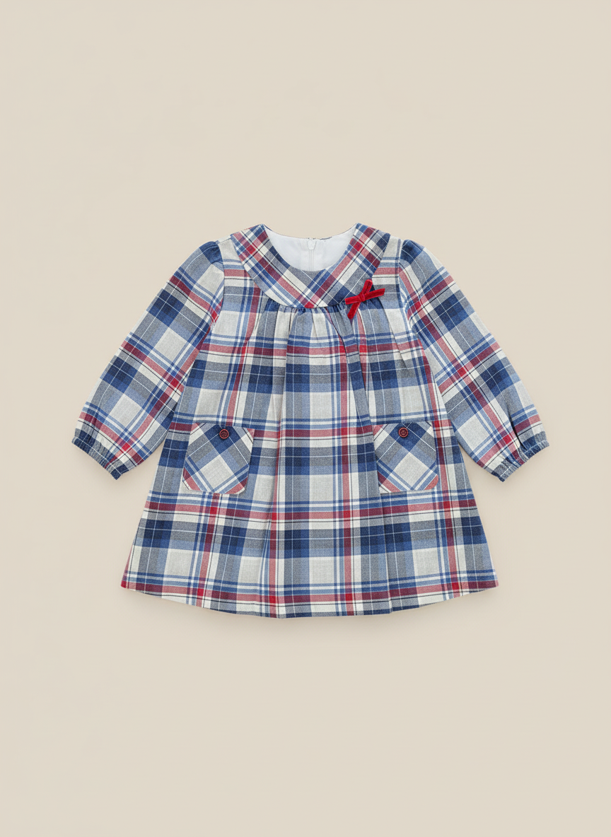 Vestido – Vestido cuadros azul marino y rojo – 100% algodón