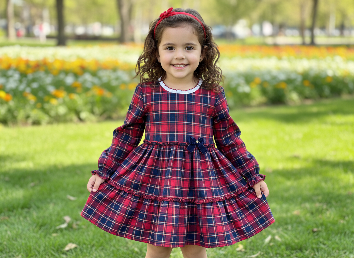 Vestido – Vestido de cuadros rojo y azul marino – Vestido 100% algodón – Forro 65% poliéster 35% algodón